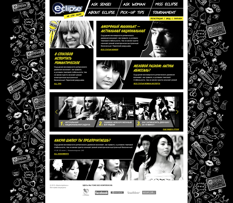 Создание брендированной платформы для коммуникации с молодежью путем подачи материала по соблазнению парней и девушек. Проведение конкурса "Miss Eclipse".